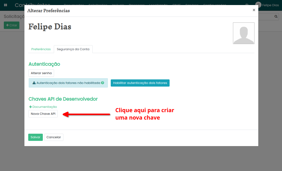 Qualquer usuário cadastrado no sistema pode fazer o acesso via API, desde que tenha a devida permissão para fazer operações de consulta, criação, atualização ou cancelamento sobre o registro em questão. Se ainda não está cadastrado, faça o seu cadastro antes de continuar, bastando acessar os links postados anteriormente. Observe que no Ambiente de Produção, é necessário aguardar a aprovação do cadastro para acessar o sistema (e consequentemente a API).